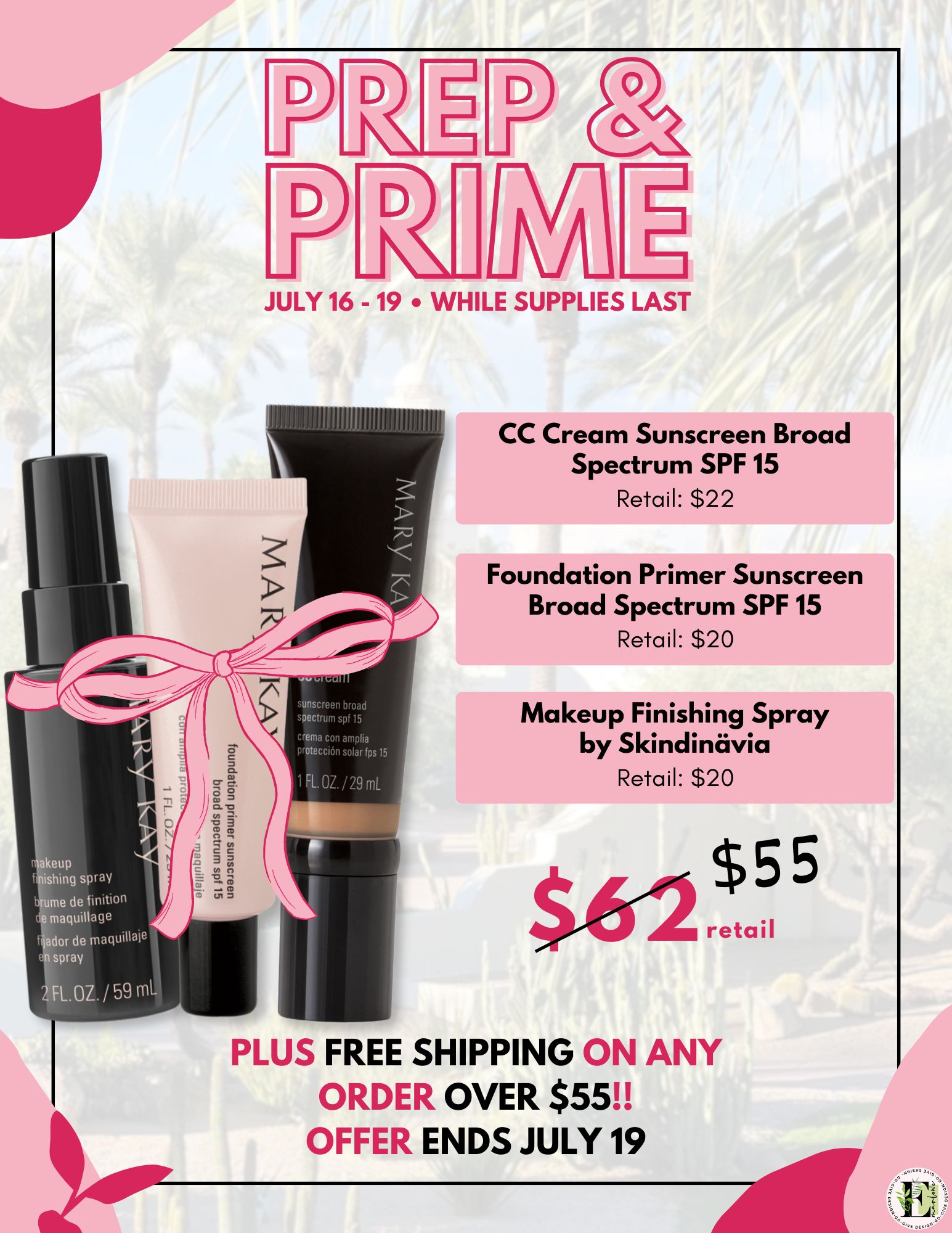 This bundle includes Finishing Spray, Foundation Primer, and your choice of Mary Kay's CC Cream. Other Foundations cannot be substituted for CC Cream.